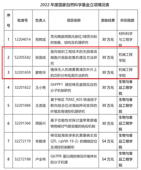 机械公司喜获两项2022年度国家自然科学基金项目